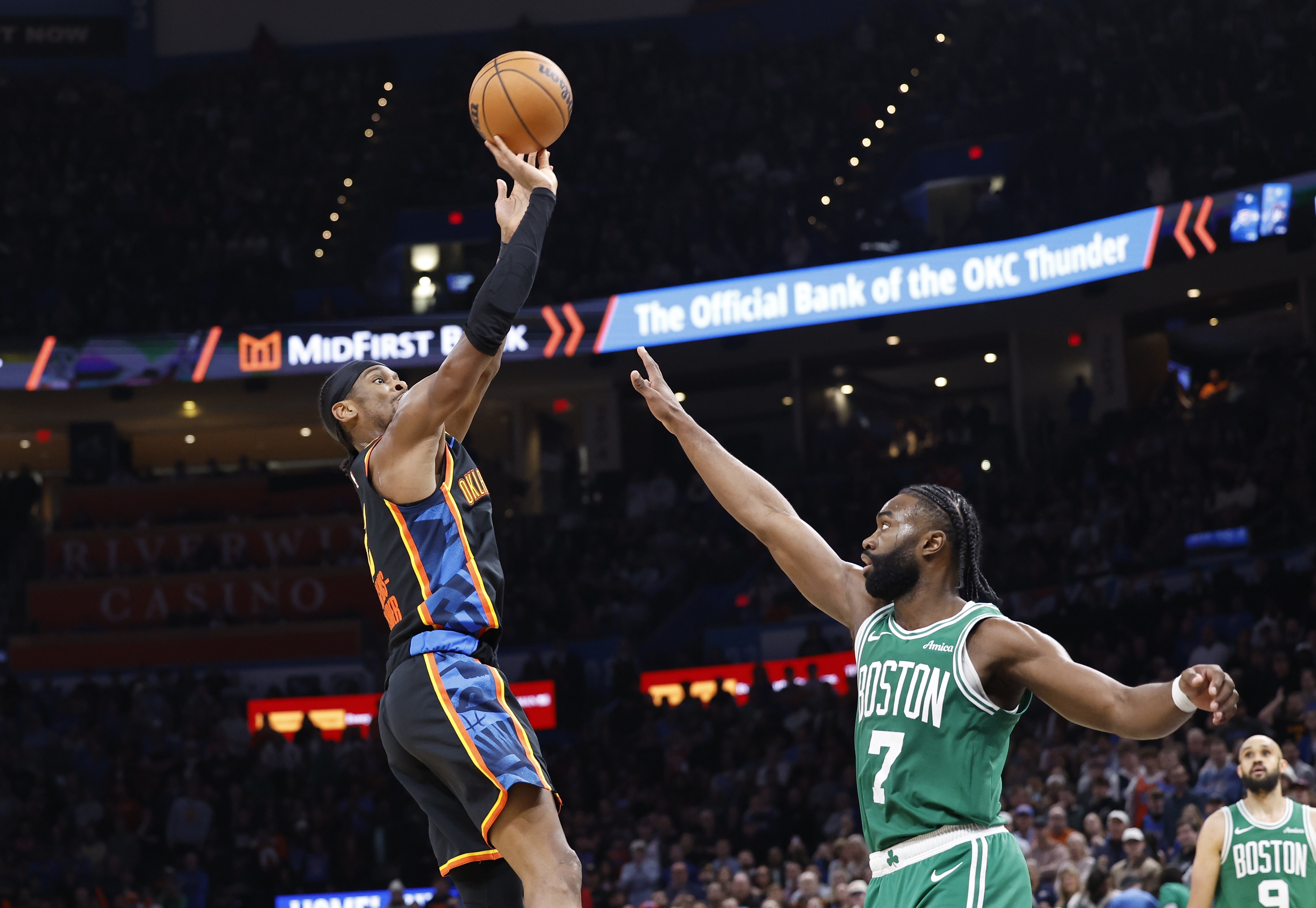 本赛季,布朗场均29.5分6.4篮板5助攻,投篮命中率49.5%;亚历山大场均31.9分4.5篮板6.4助攻,投篮命中率54.7%。