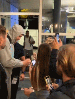 东契奇回国被球迷围堵:淡定在湖人球衣上签名 湖记:还剩18天合练